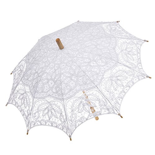 SHIPPING NOTICE Shipment would be arranged within 48 hours after your order is paid Shipping is arranged from overseas-Standard shipping takes about 10-15 business days If you need the item urgently, please contact us (via Amazon). The shipping can be upgraded to Expedited (3-5 business days) if you agree to pay extra cost DESCRIPTIONE *100%Brand new with high quality *100% Cotton battenburg lace, metal ribs and wooden shaft *Length:25.6"(65cm)when closed *Diameter:30"-31.5"(76-80cm)when open *Can't be used in raining days *Great for wedding, bridal shower decor, bridesmaid gifts, photography, parties, theatrical performances, decoration, daily use or other special occasions